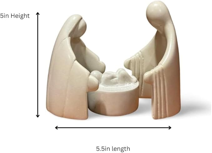 This contemporary soapstone nativity scene is a minimalist masterpiece, hand-carved with understated elegance. The natural tones of the stone and the minimal detail create a serene and modern aesthetic. The figures, including the infant at the center, can be arranged in a circle to symbolize the divine birth. By purchasing this unique piece, you not only bring the spirit of Christmas into your home but also support fair wages and community development programs for artisans in western Kenya.