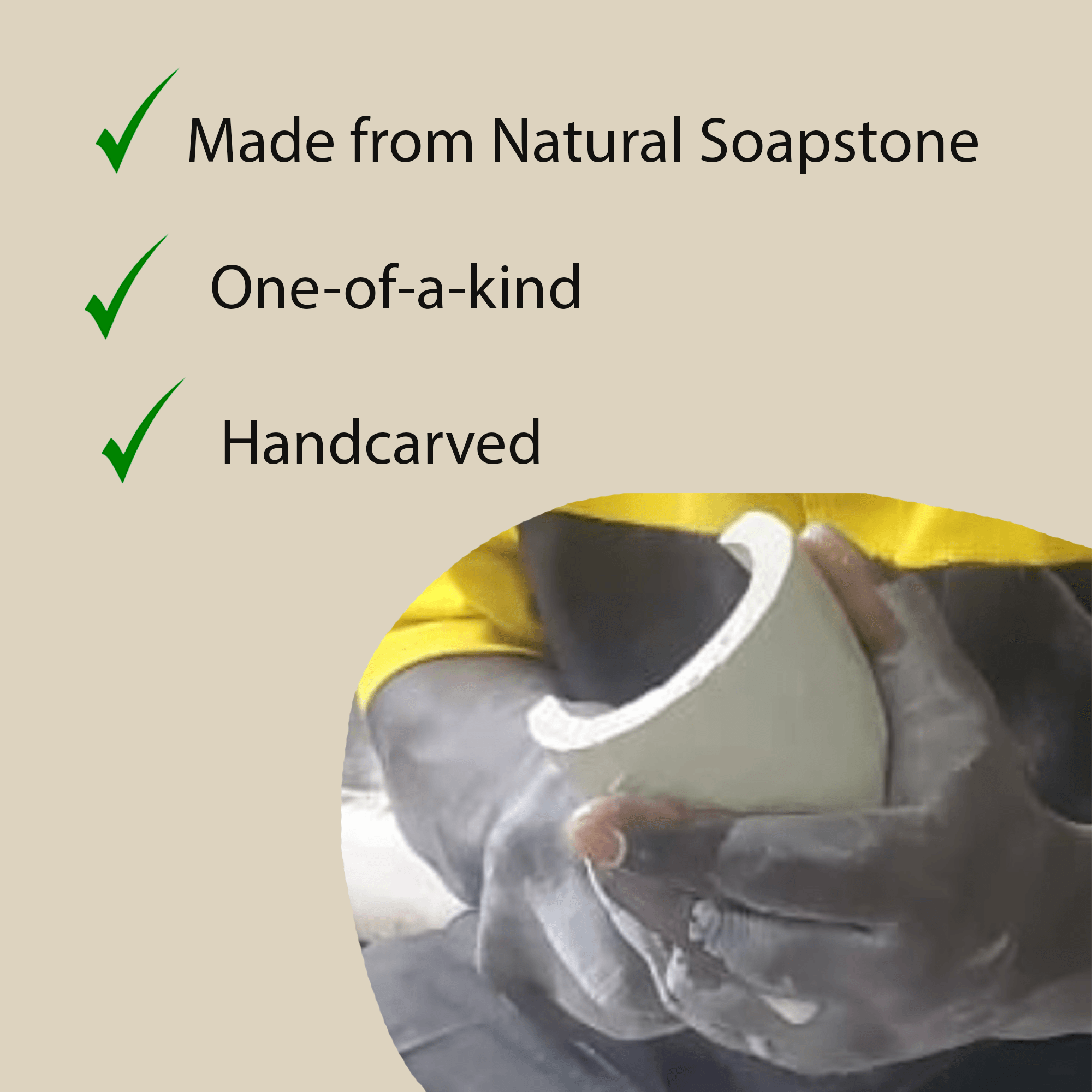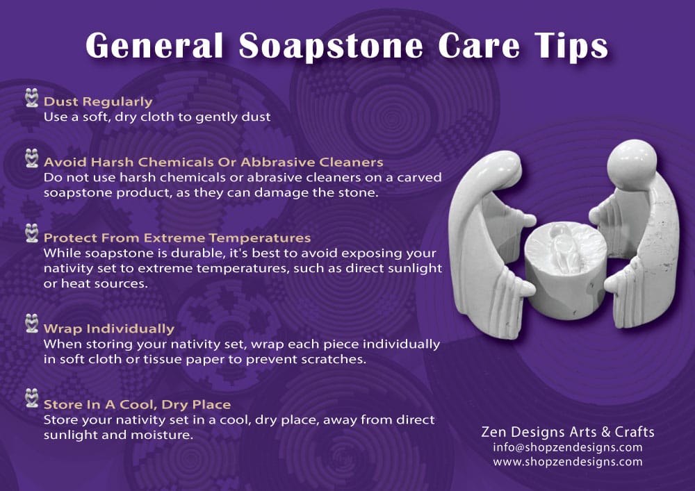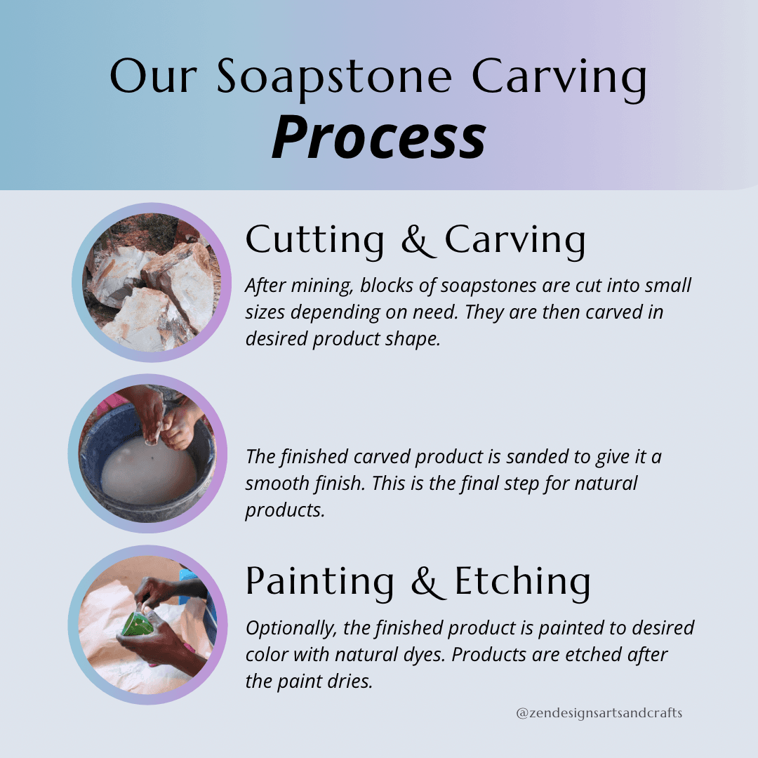 Note: Due to the natural variations in soapstone, each sculpture is unique and may vary slightly in color and texture.