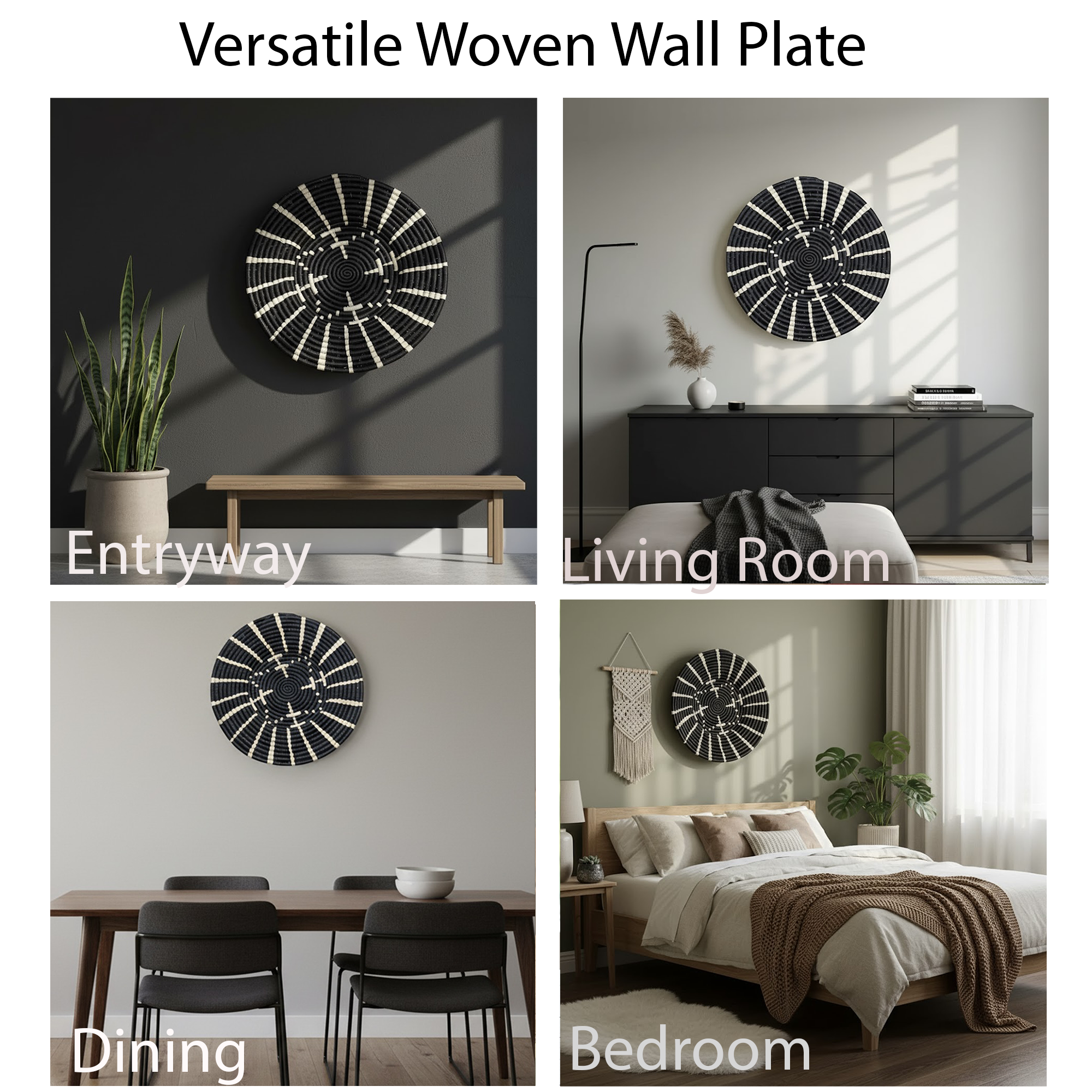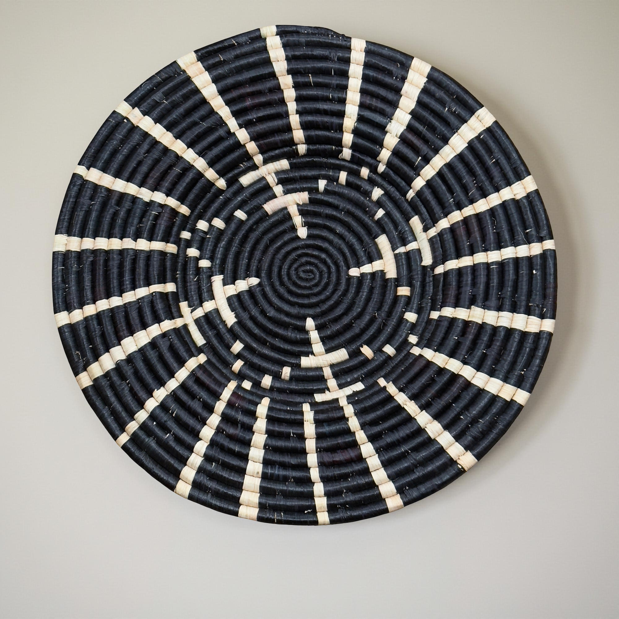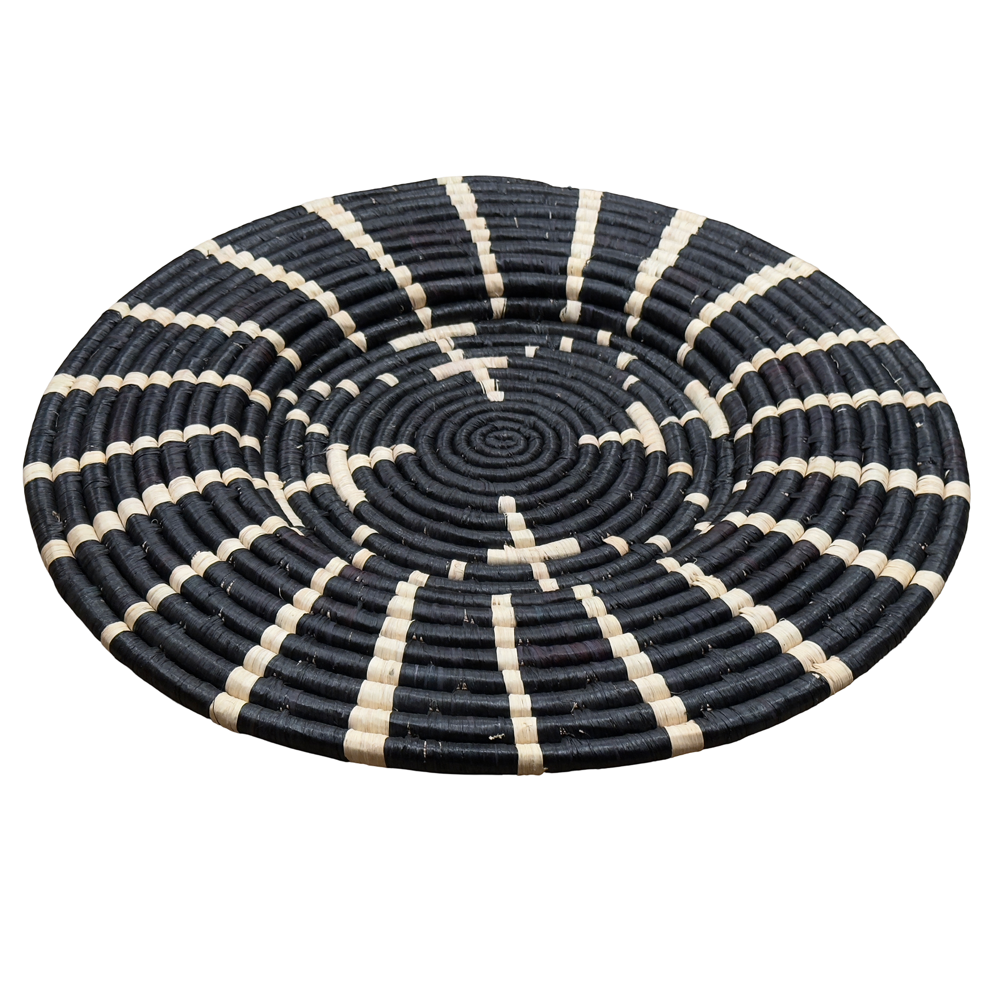 Handwoven AfricanRaffia Wall Plate Mat Basket in Black and Natural with Stripes – 21,18,16,14 Inches Diameter