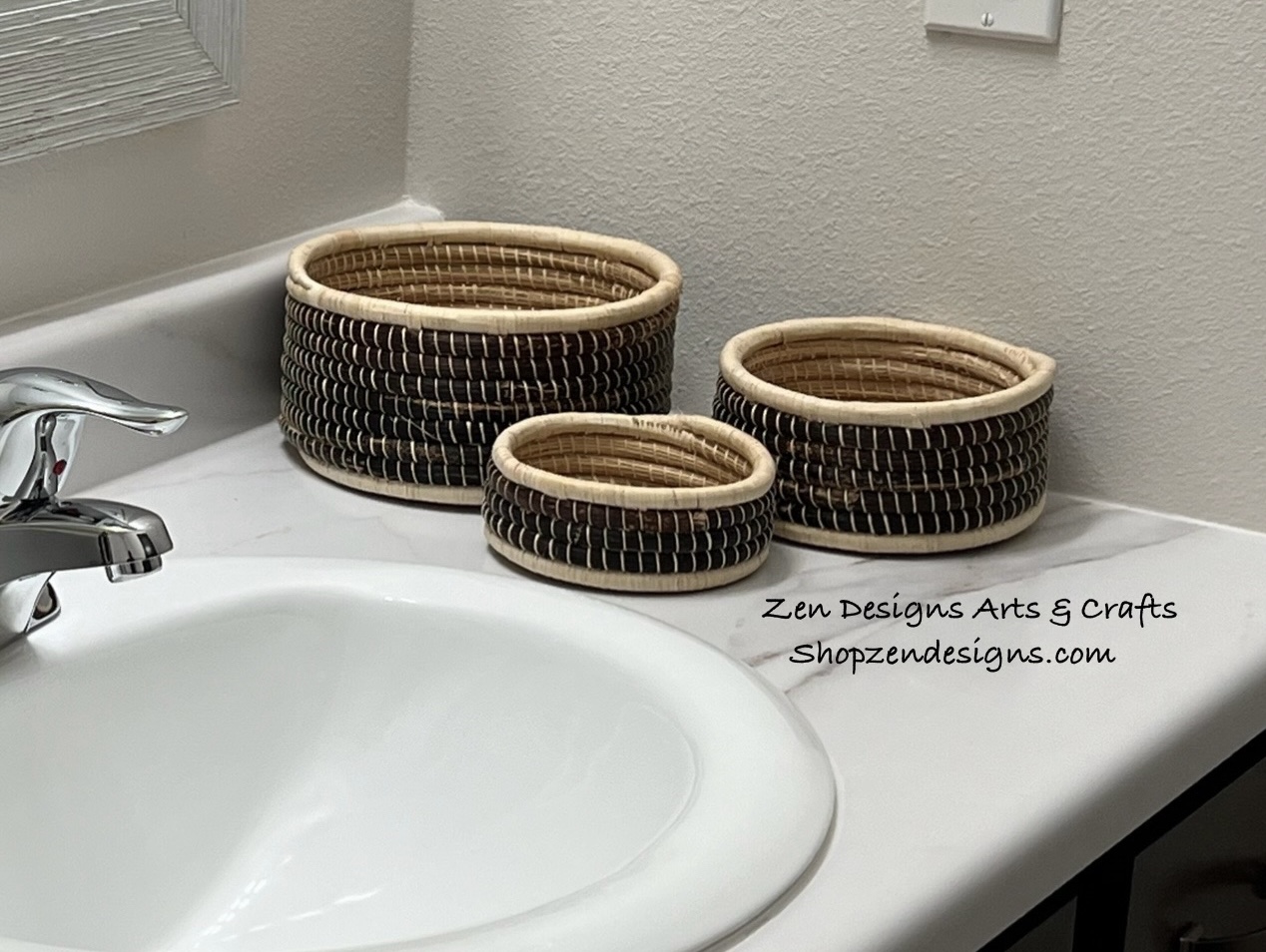 Each set comes with 3 baskets of approx. 6″ to 9″ in diameter. Handmade in Kenya