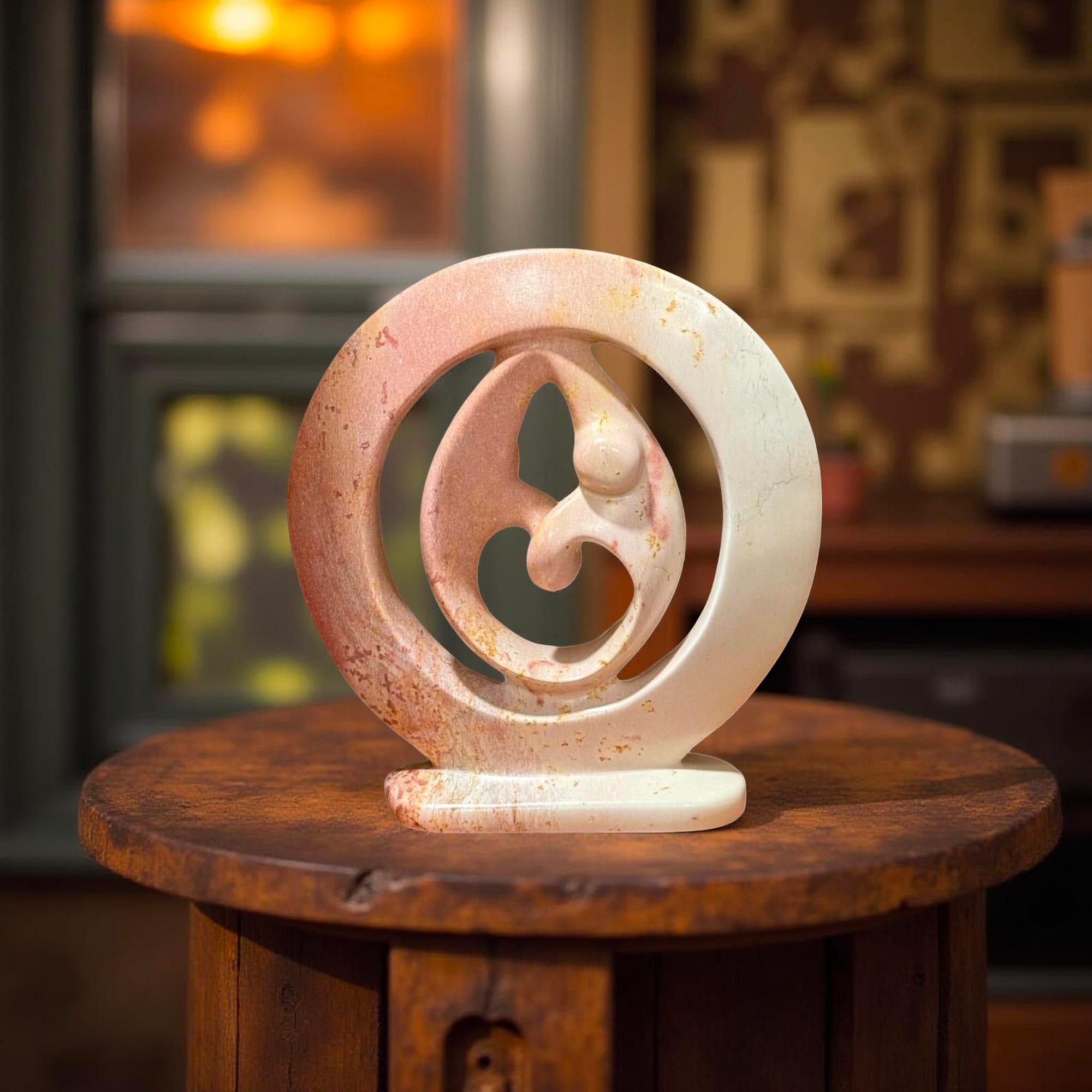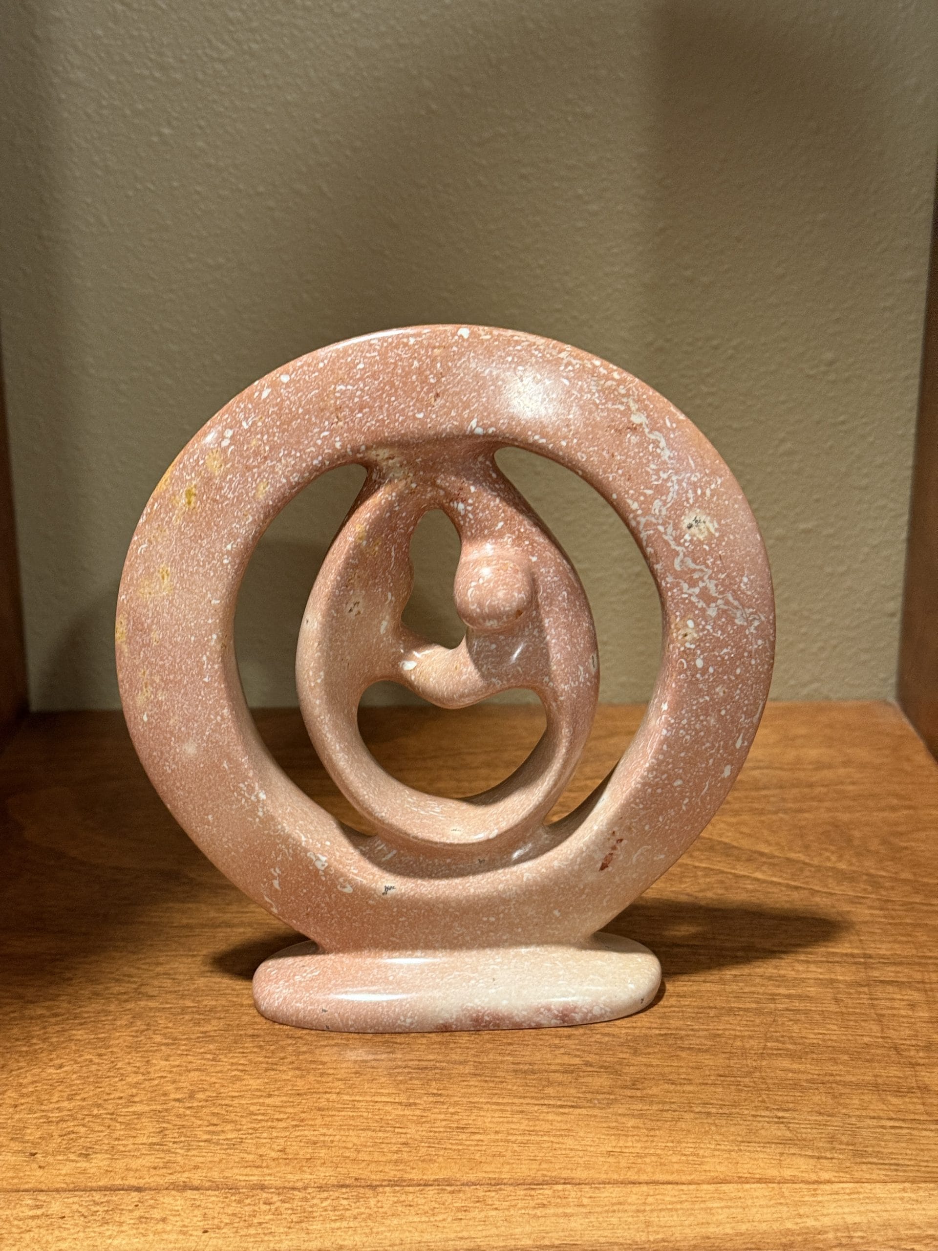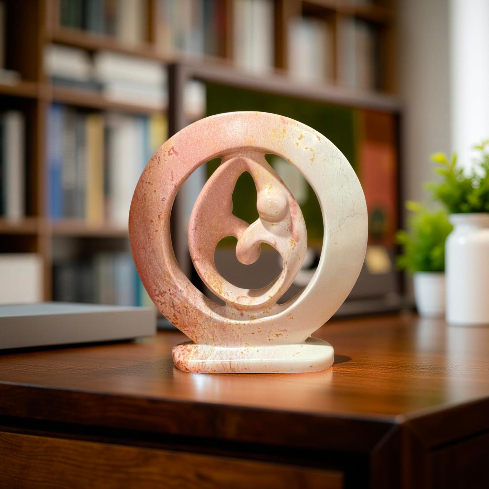 This exquisite soapstone sculpture captures the timeless beauty of love and connection. Hand-carved by skilled artisans in Kisii, Kenya, this piece showcases the natural beauty of soapstone with its warm, earthy tones and intricate details. The smooth, flowing lines and intertwined forms create a sense of harmony and unity.