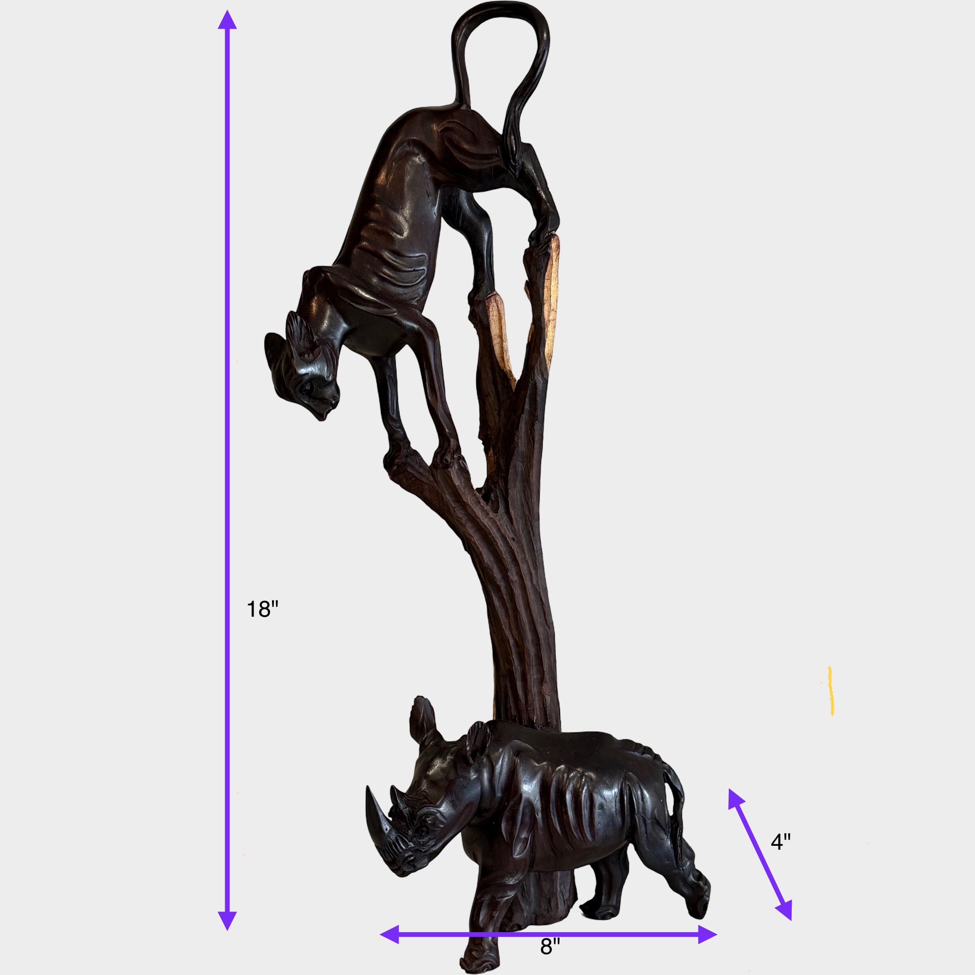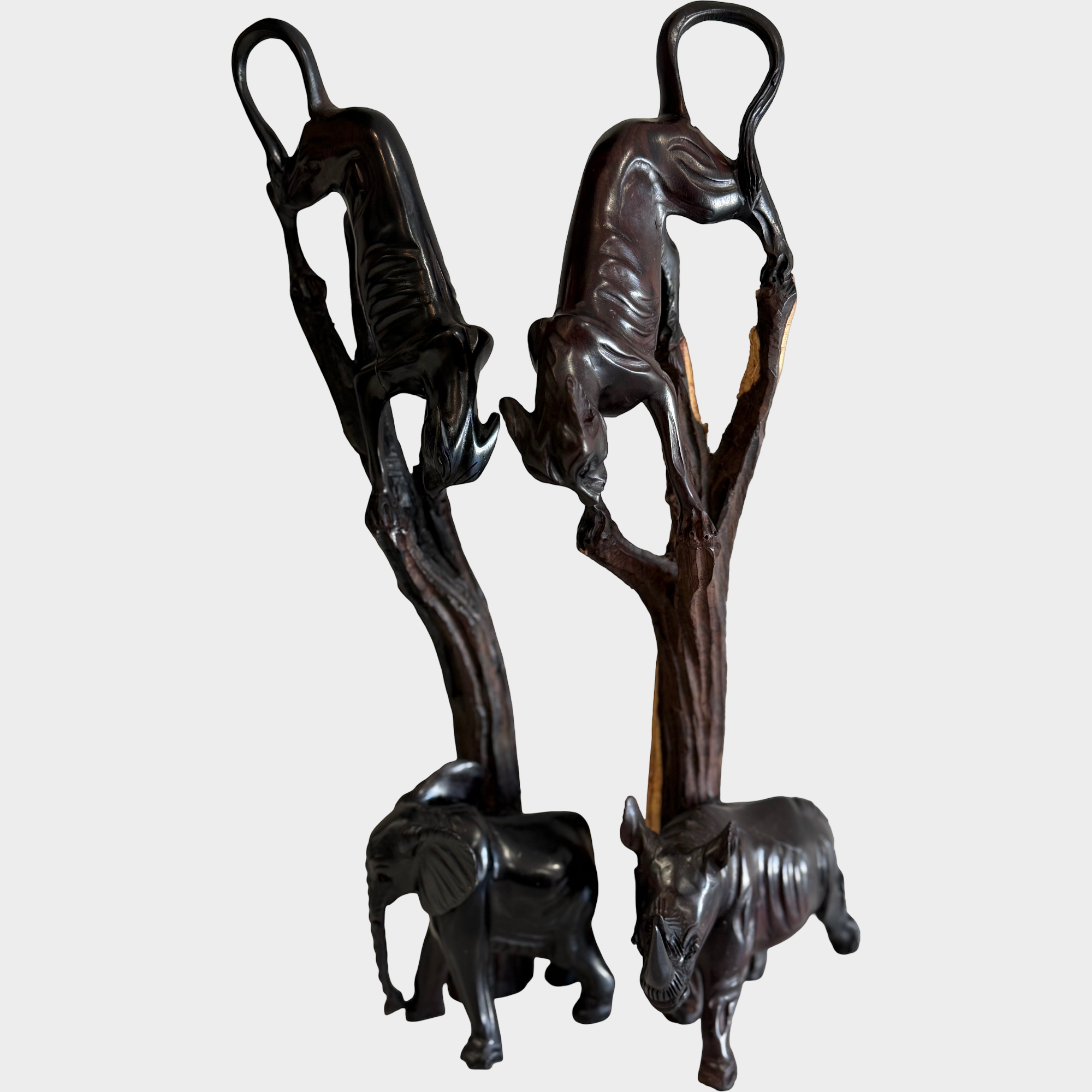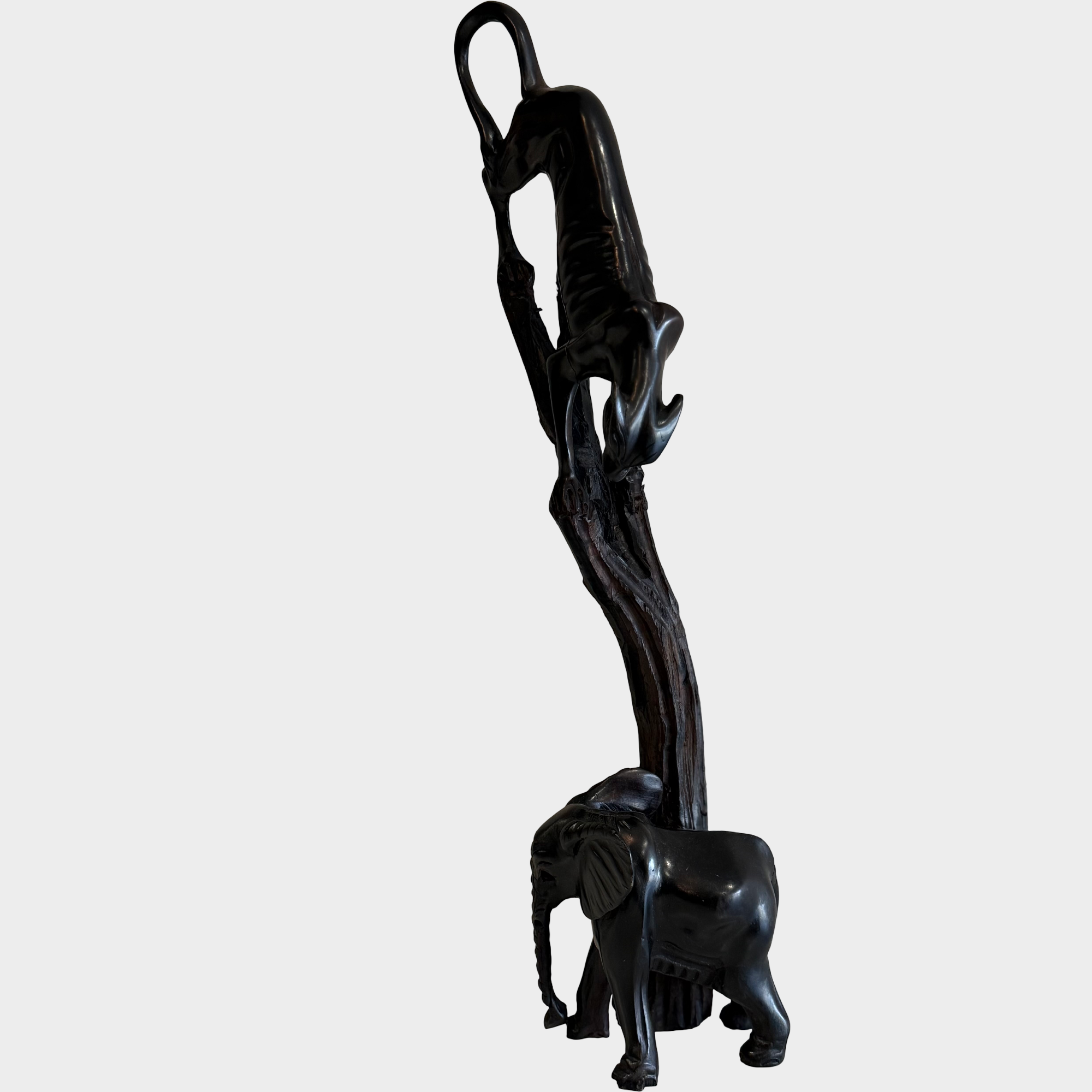 Bring the untamed beauty of the African savanna into your home with this magnificent hand-carved ebony wood sculpture. Each piece is a testament to the artisan’s skill, transforming a single block of rich, dark ebony into a captivating tableau of nature. The intricate details are truly remarkable, from the graceful, slender legs of the antelope to the powerful, sturdy form of the elephant. The sculptures captures a moment of serene harmony, symbolizing both the strength and grace of Africa’s most iconic animals.