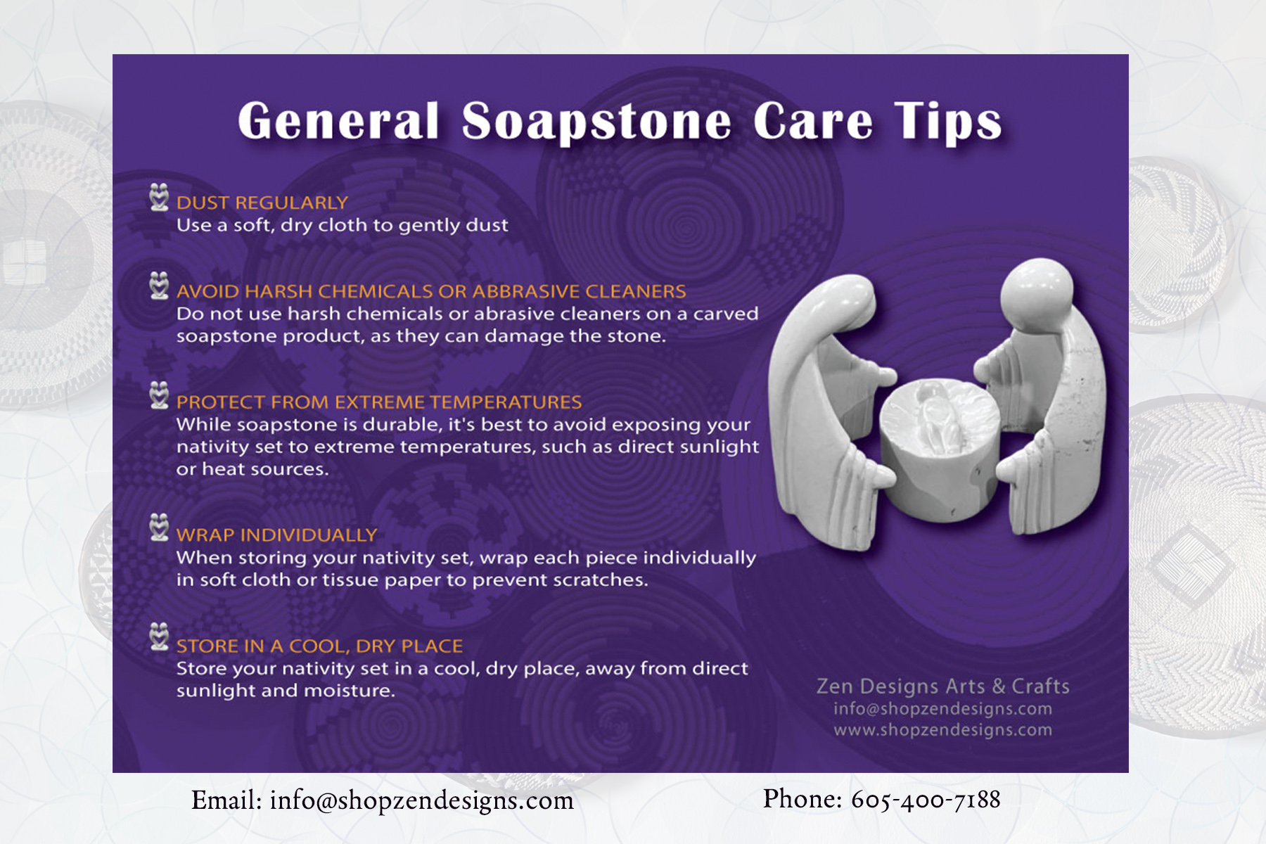 Note: Due to the natural variations in soapstone, each sculpture is unique and may vary slightly in color and texture.