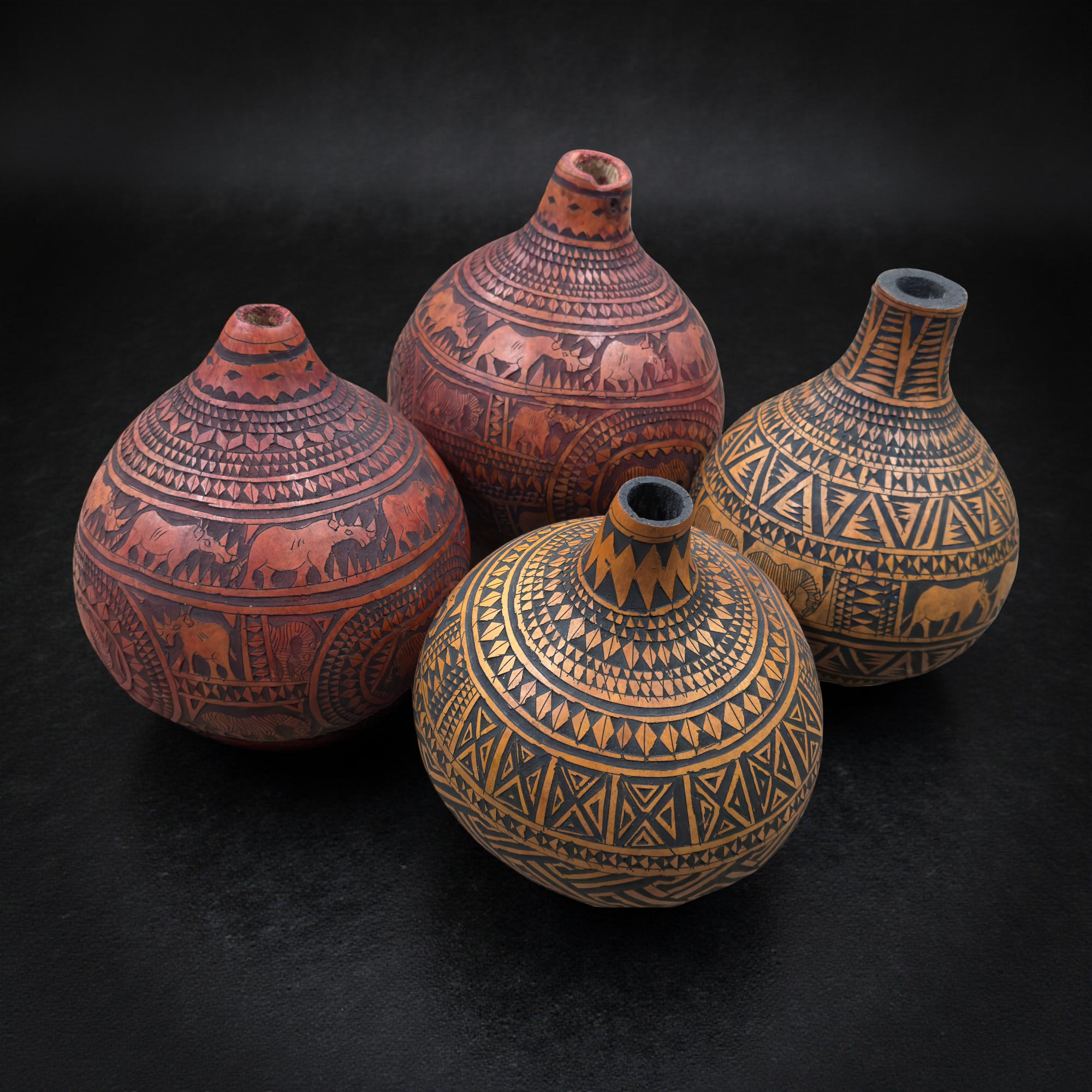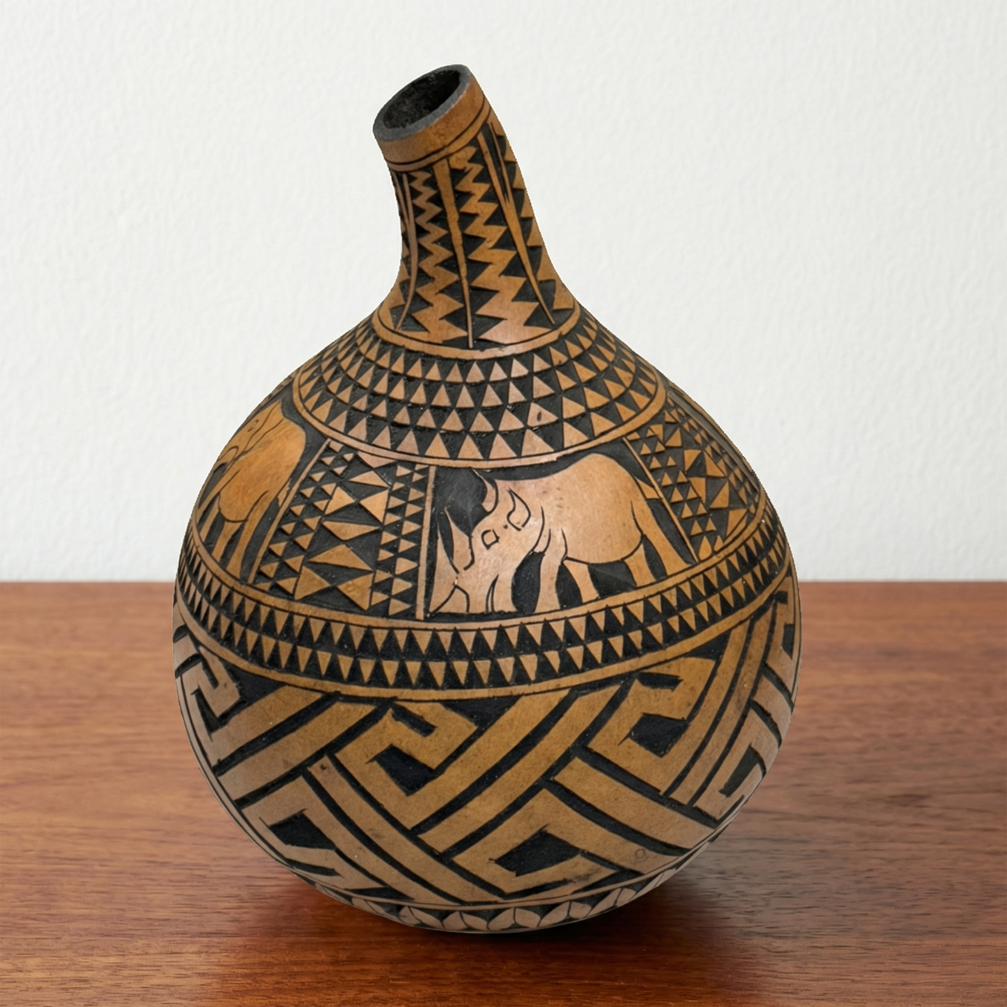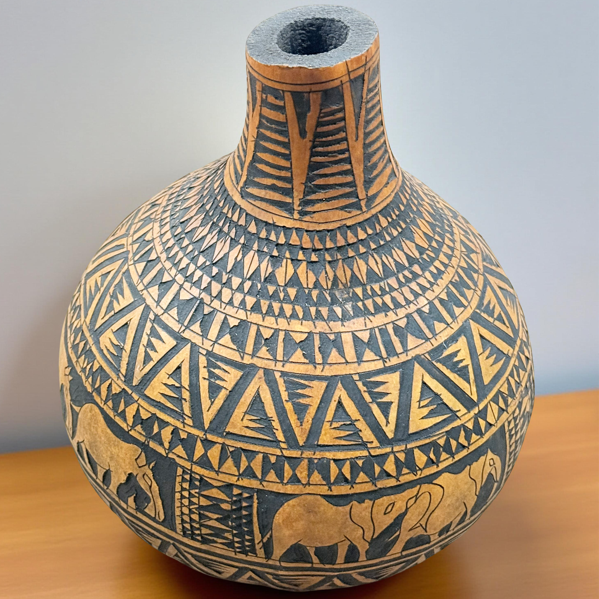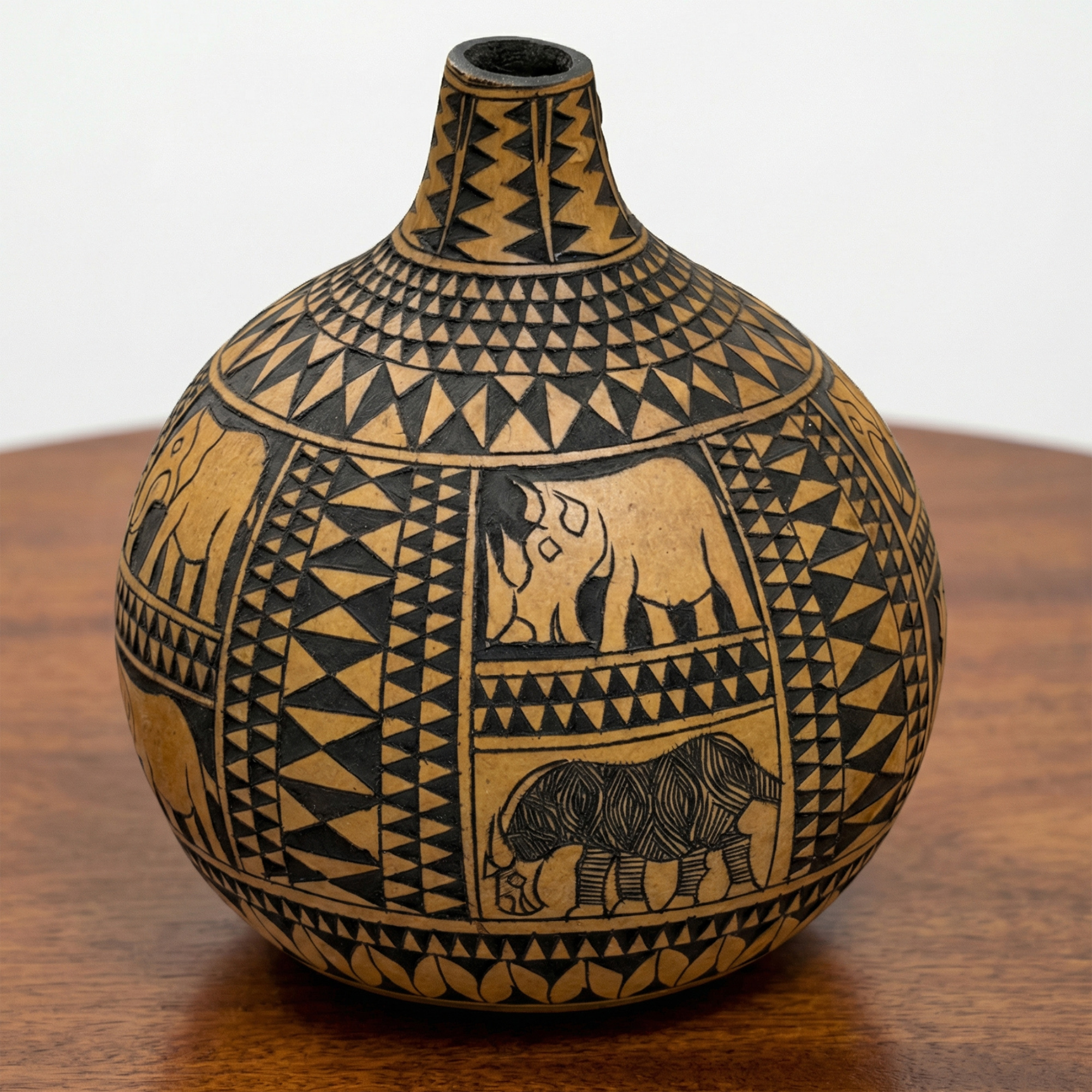 Our hand-carved calabash gourds are more than just decor; they are storytellers born from the rich soil of Kenya. Harvested from the land and meticulously dried, each gourd is then entrusted to a master tribal carver whose hands transform its simple surface into a canvas of intricate, time-honored patterns. These motifs are the visual language of Kenyan heritage, reflecting generations of tradition, community, and the vibrant spirit of East Africa.