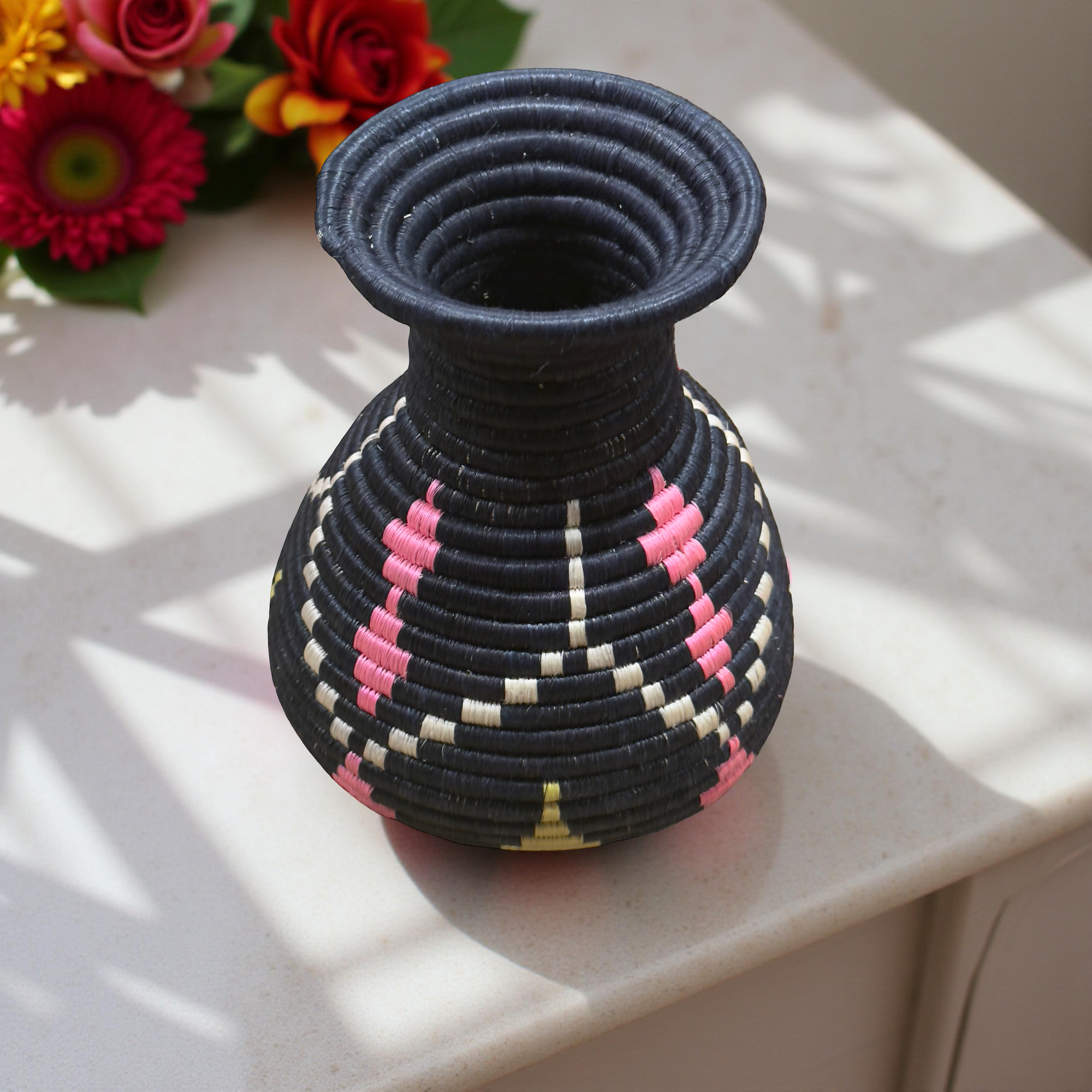 Add a touch of natural elegance to your home with this handwoven flower vase, crafted with care by skilled artisans. Made from high-quality sisal, this African flower vase showcases traditional weaving techniques, bringing a unique and timeless charm to any space. Perfect as a decorative basket vase, it effortlessly enhances your living room, dining area, or office with its earthy textures and organic beauty. Whether you use it to hold dried flowers, pampas grass, or as a standalone statement piece, this handmade decorative vase blends style and craftsmanship seamlessly. Each handmade flower vase is unique, reflecting the artisan’s touch and the cultural heritage behind its creation. Elevate your décor with this stunning sisal basket vase, a perfect mix of tradition and modern aesthetics.