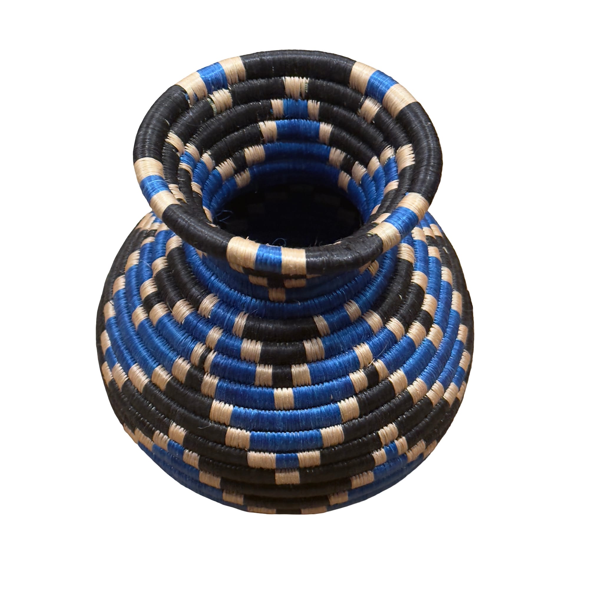 Handwoven Sisal Basket Vase – Handmade African Decorative Flower Vase with dimension of approximately 9.5" height x 8" base diameter x5" top diameter