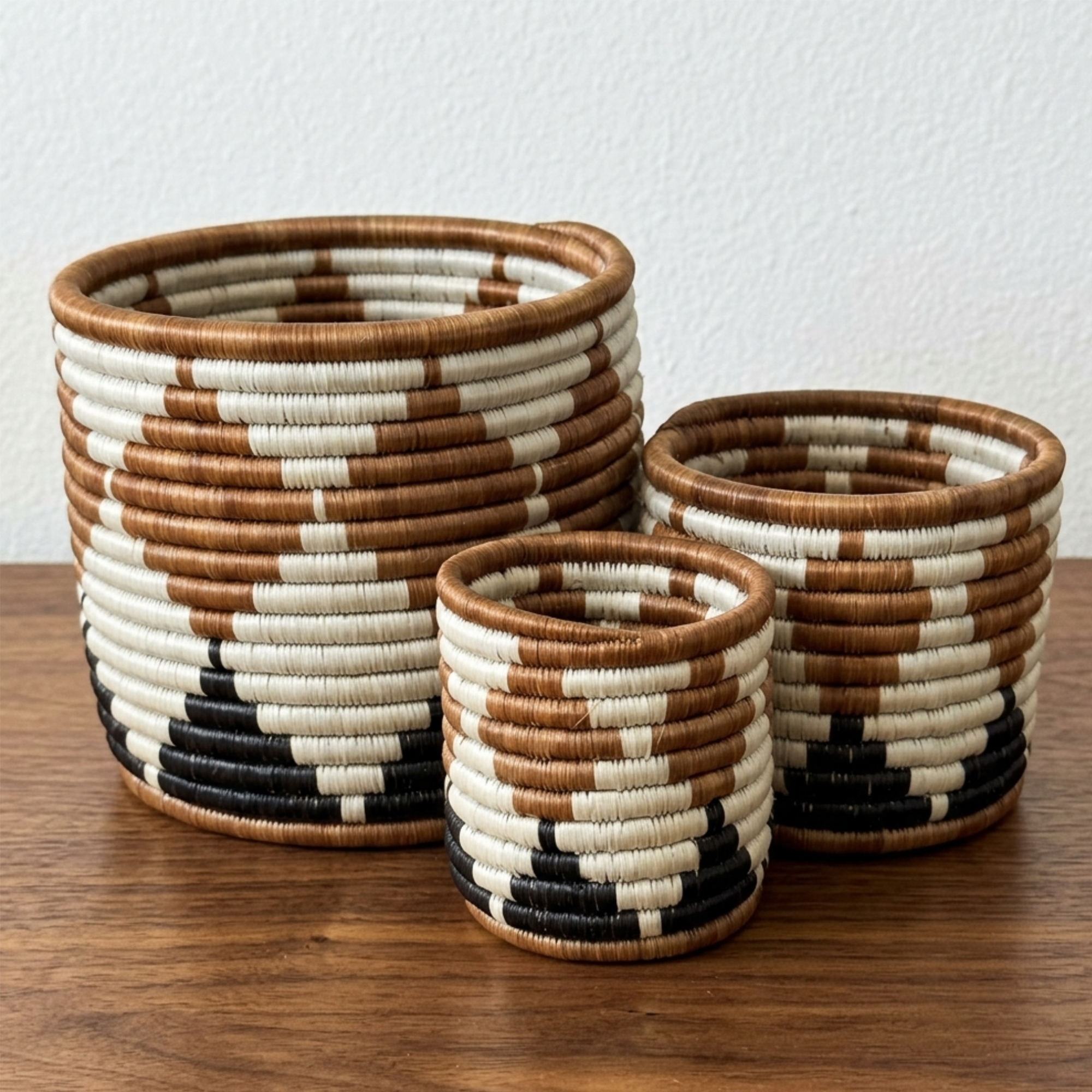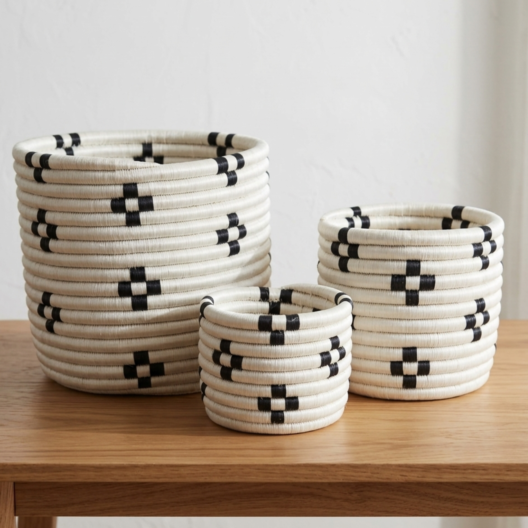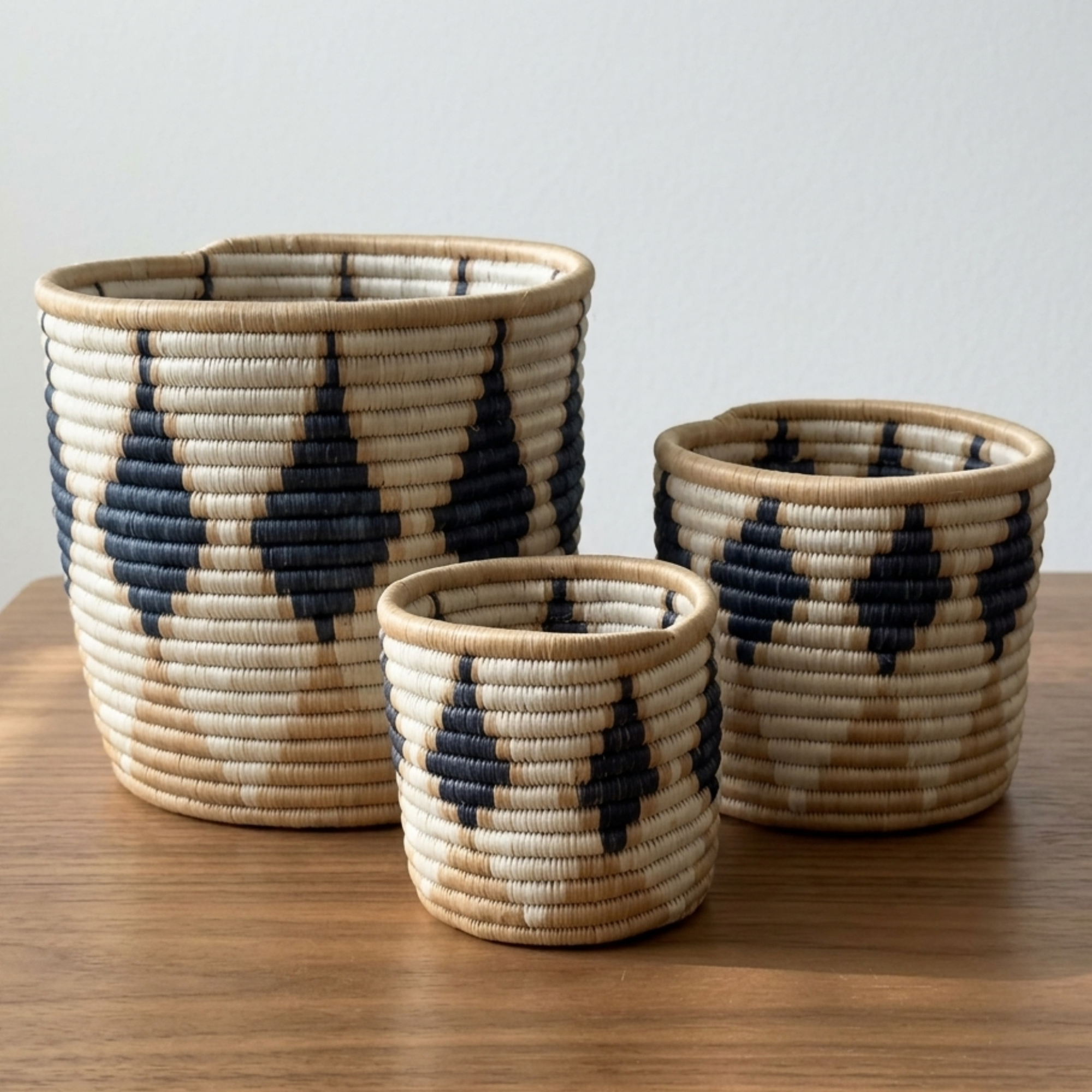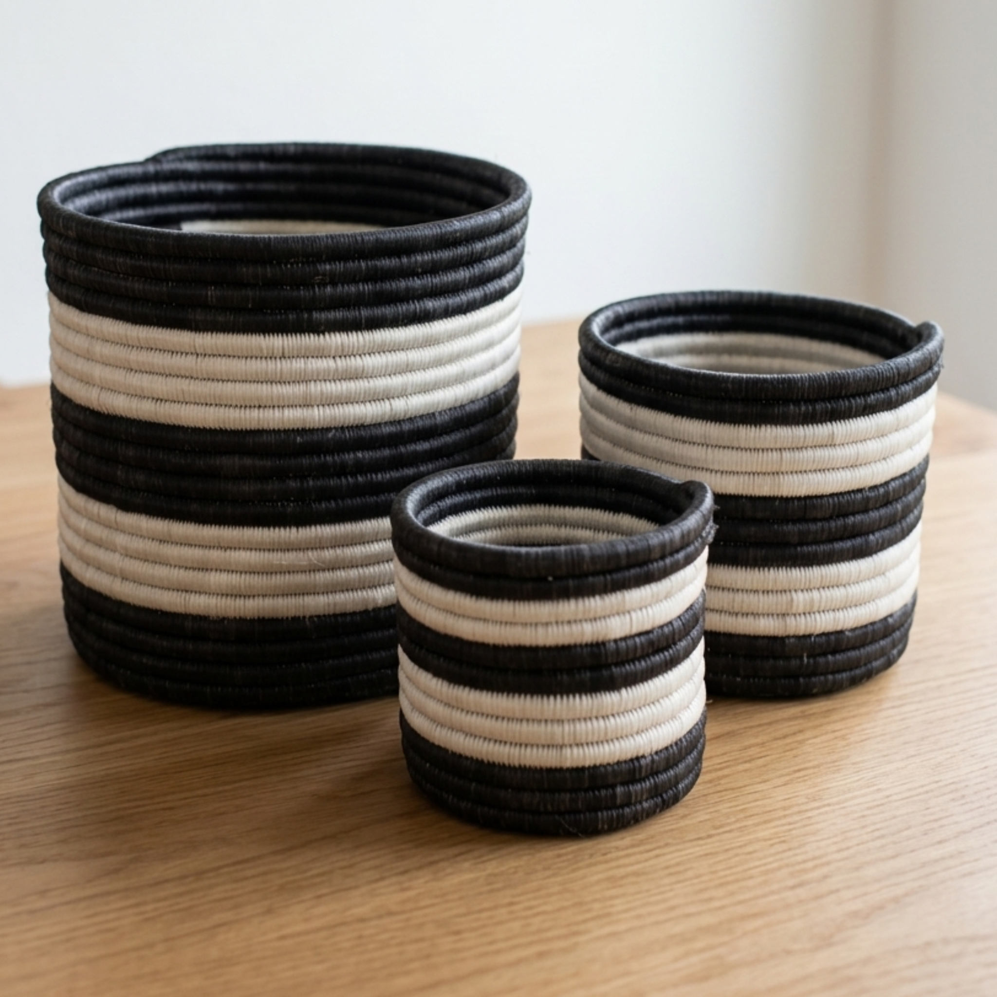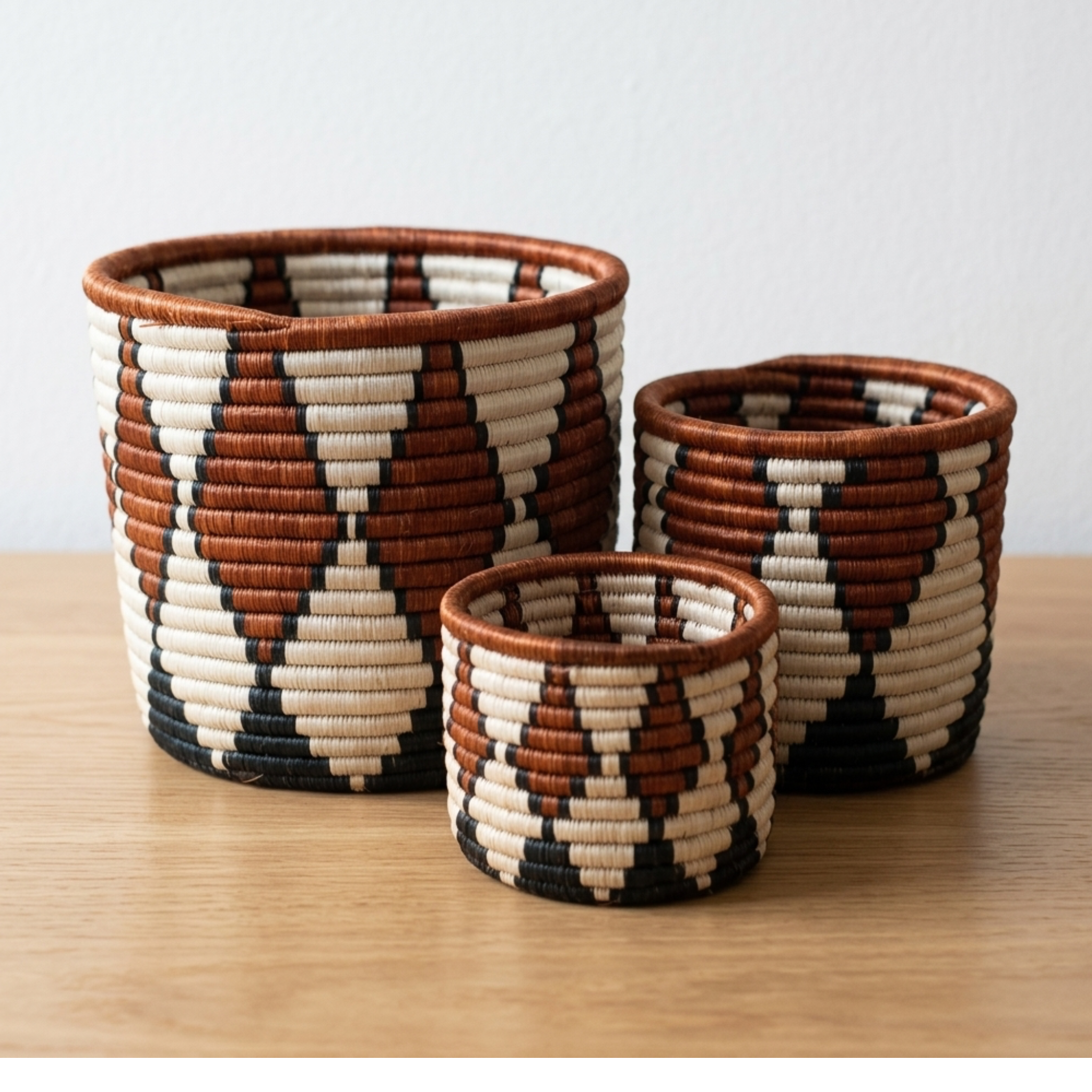 Add a touch of artistry and natural beauty to your home with these exquisite handwoven African planter baskets – a timeless décor piece that blends tradition with contemporary style. Elevate your home décor with this stunning set of three handwoven African planter baskets. Each piece is beautifully crafted by skilled artisans, ensuring a unique, artisanal touch that brings warmth and authenticity to any space. Made from natural sisal, these baskets are durable, eco-friendly, and sustainably sourced, making them a perfect blend of style and sustainability. Their versatile design allows you to use them as planter baskets, vases, or stylish storage organizers, adding both functionality and charm to your home. Designed for indoor décor, these baskets seamlessly complement any setting, whether modern, bohemian, or rustic. Use them to display plants, dried flowers, or as decorative statement pieces that exude elegance and cultural richness. Crafted with authentic African craftsmanship, each basket is ethically sourced and handwoven with precision, supporting traditional artisans and preserving heritage techniques.