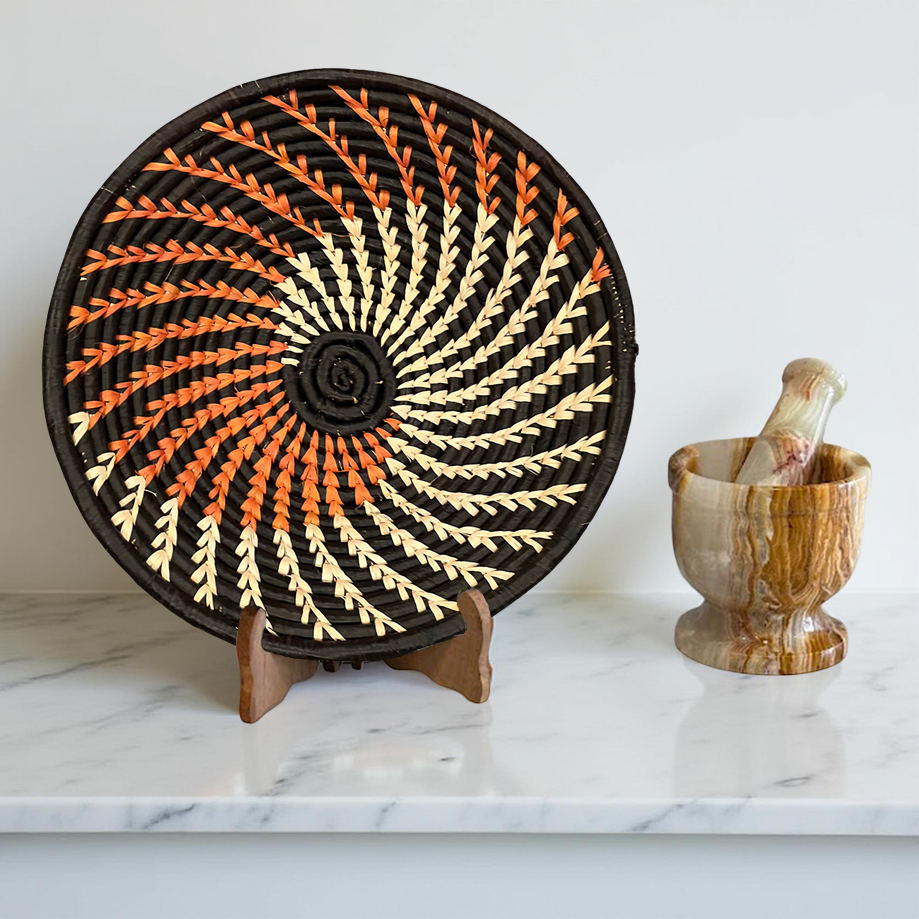 Approx. 12″, 10″, 8″ diameter and 3″ height in diameter. Handmade in Kenya