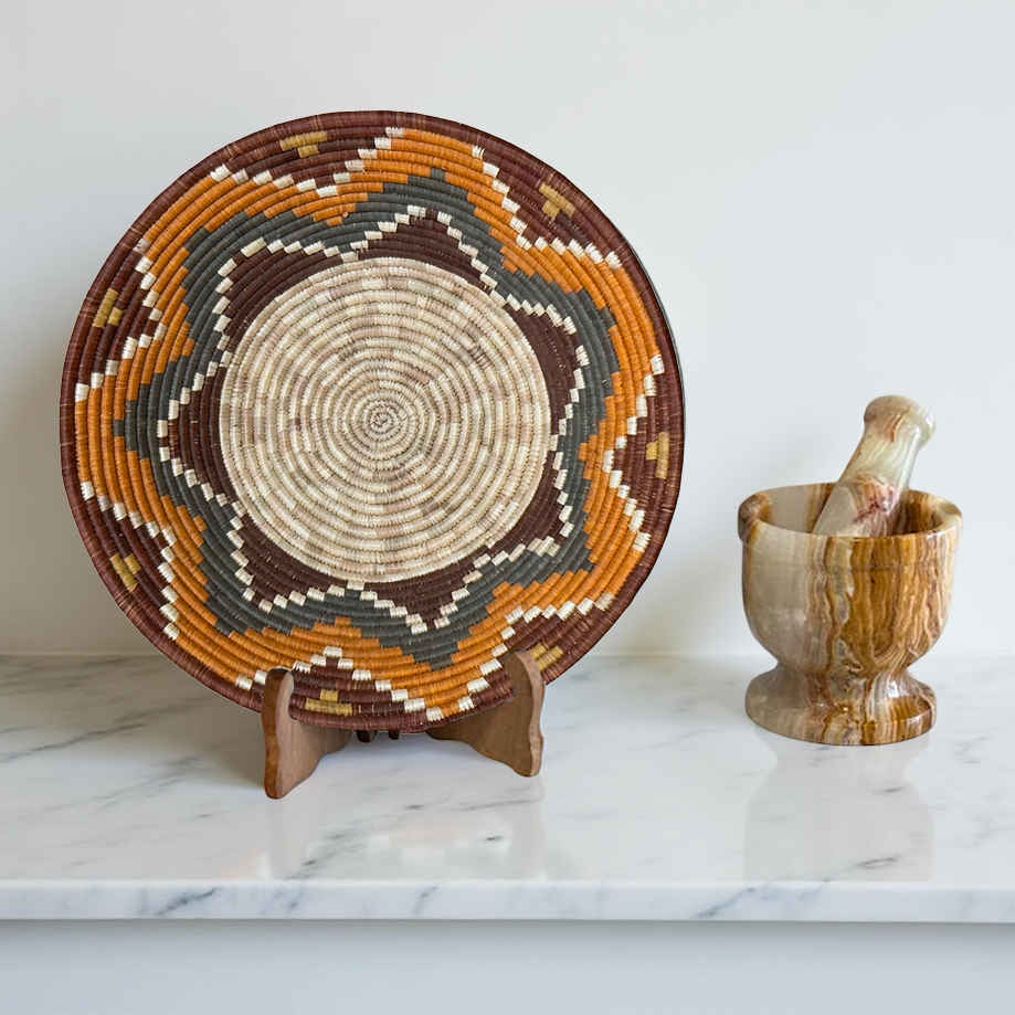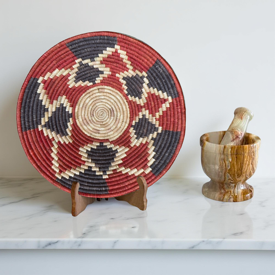 This stunning Ugandan Toro African Basket Bowl is a true work of art, handcrafted by skilled women artisans using traditional weaving techniques that are passed down through generations. The basket is woven from natural sisal and sweetgrass, which are hand-dyed to create the vibrant colors. The intricate geometric patterns and bold colors add a touch of African flair to any space.