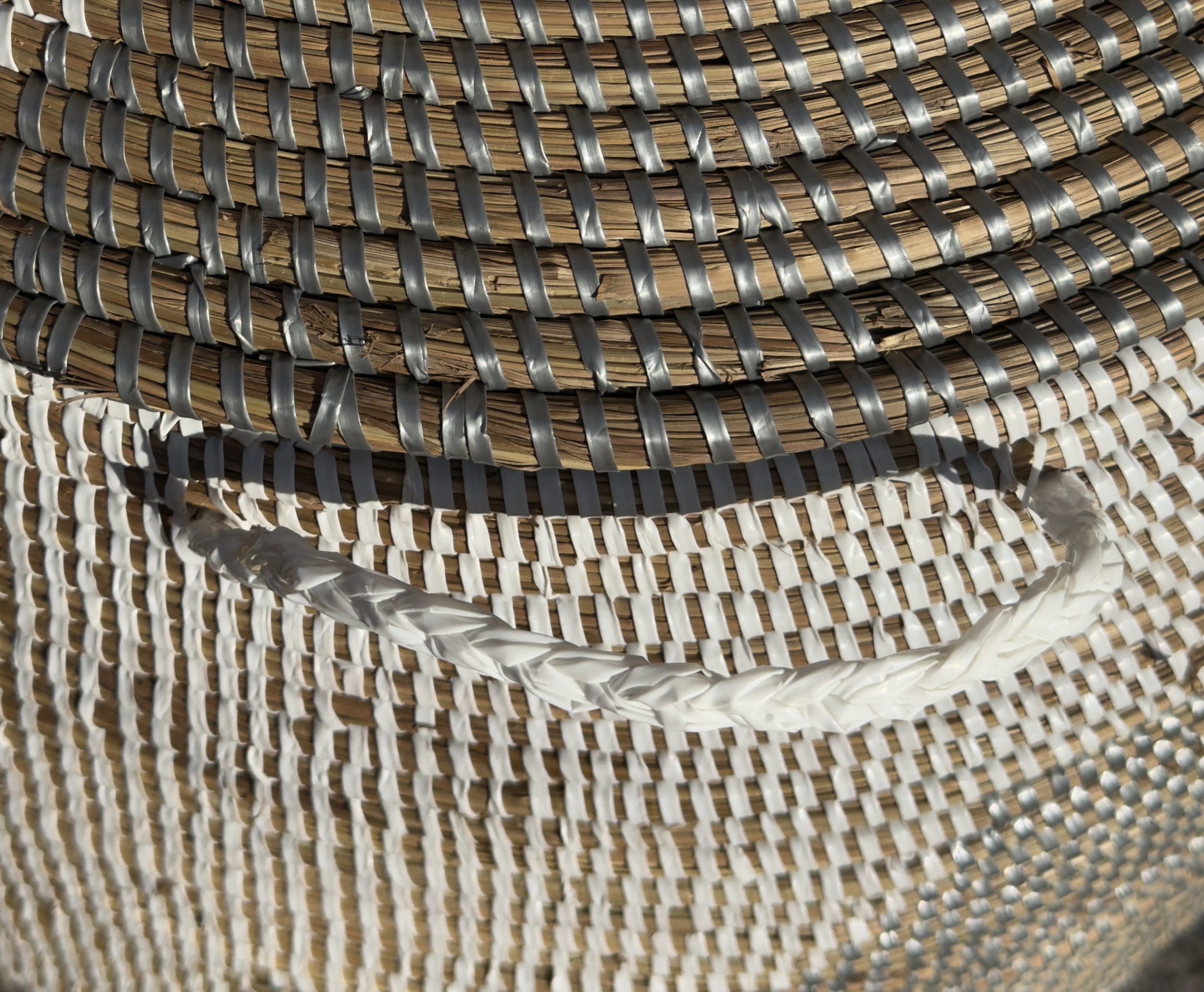 Handcrafted from: Typha (cattail) stalks, repurposed plastic