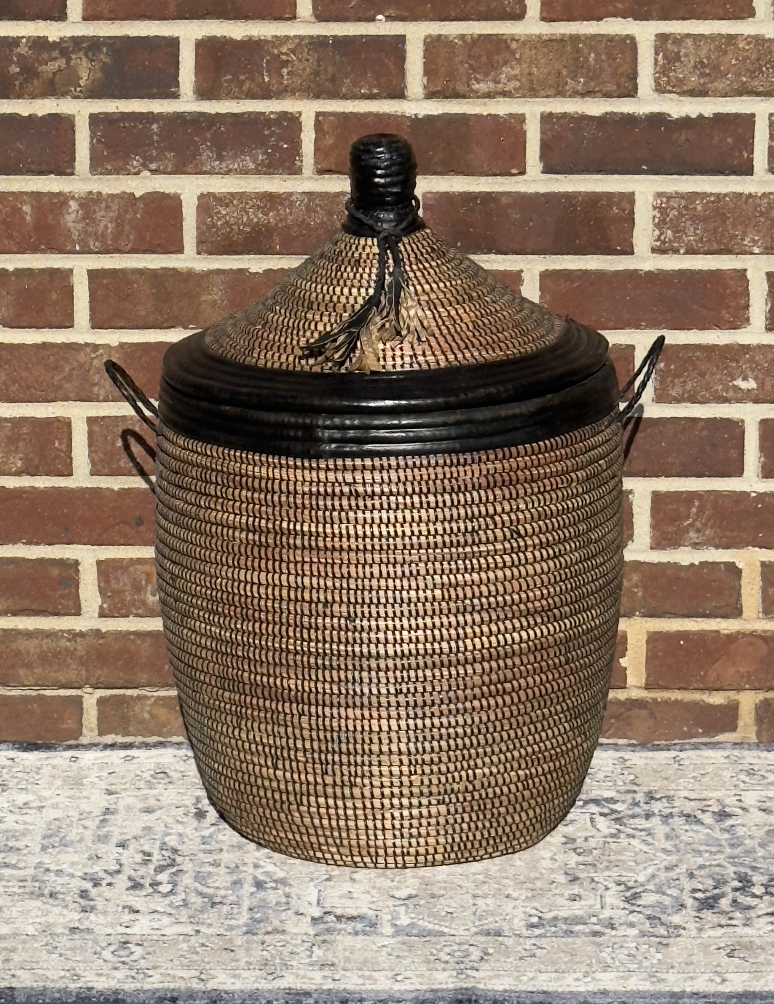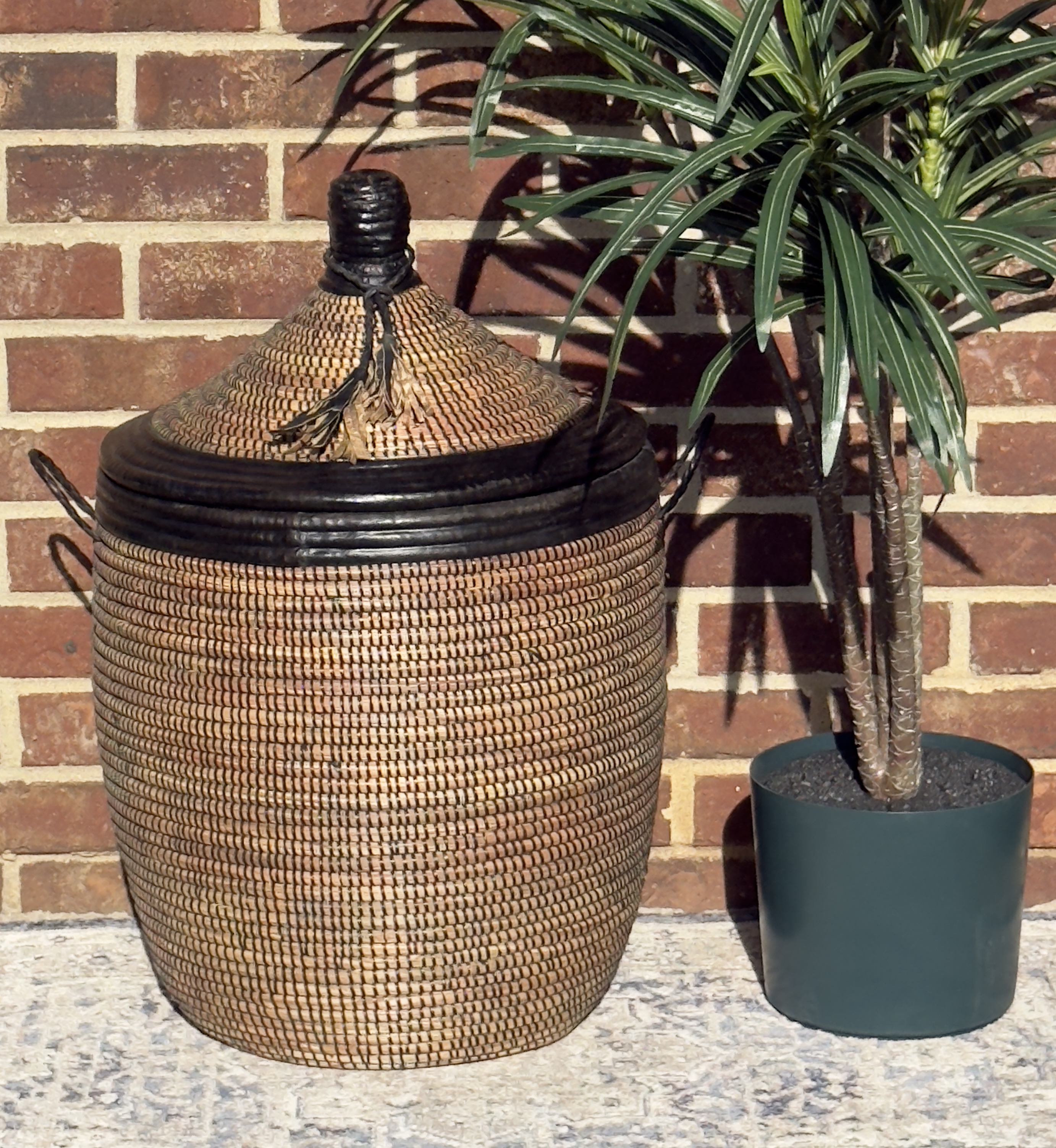 Imagine this striking basket enhancing your home decor, perhaps adding an authentic touch to an Airbnb space. Its robust construction makes it a practical and durable choice for everyday use, while its artistic design elevates it beyond mere utility. By choosing this Senegalese woven basket, you’re not only acquiring a beautiful and functional item but also supporting the livelihoods and traditions of talented craftswomen in Africa. Please note that due to the handmade nature of this product and the natural variations in materials, slight differences in dimensions and appearance are to be expected, adding to its unique charm.